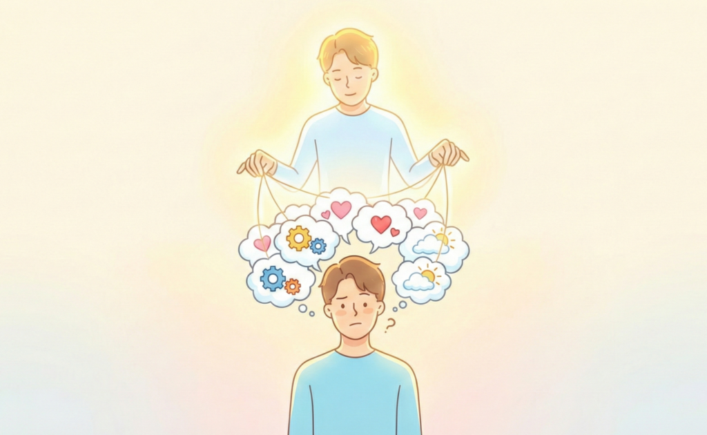 「メタ認知」とは自分の思考や行動を、まるで「もう一人の自分」が上から眺めるように客観的に把握・コントロールする能力のことです。ネットの熱狂に飲み込まれないために、冷静に考える力につながります。