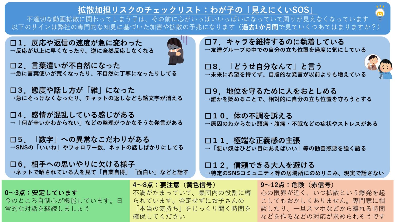 - (3)拡散加担リスク・チェックリスト:わが子の「見えにくいSOS」