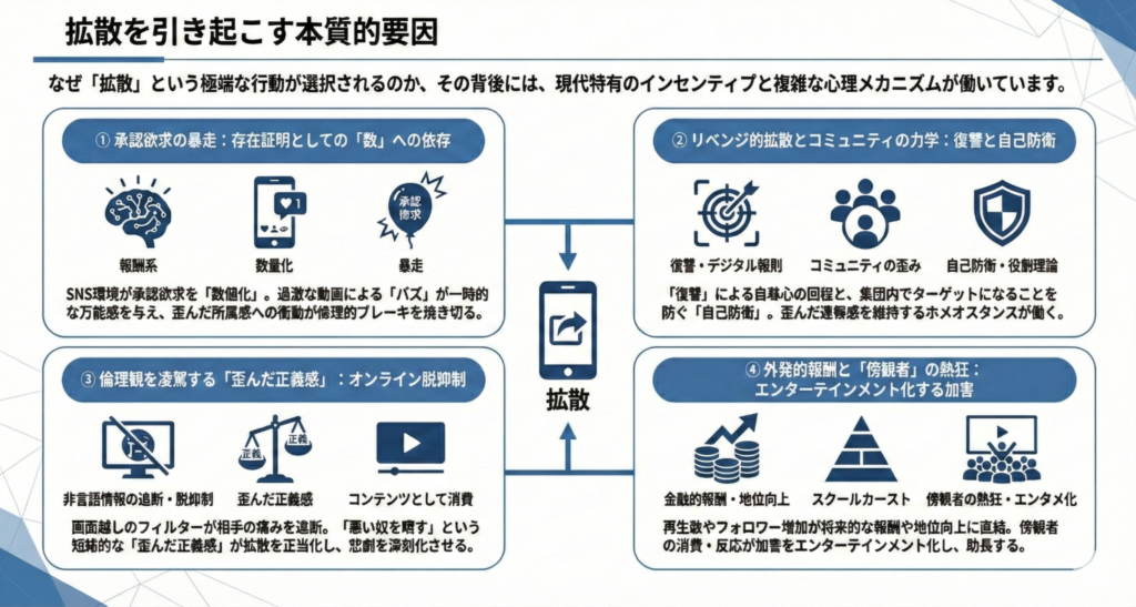 なぜ「拡散」という極端な行動が選択されるのか。その背後には、現代特有のインセンティブと複雑な心理メカニズムが働いています。