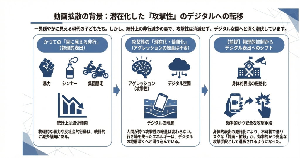 (1)動画拡散の背景:潜在化した「攻撃性」のデジタルへの転移